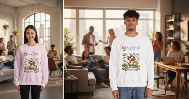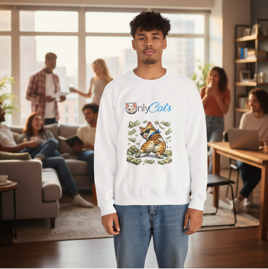 Crewneck Sweatshirt — "Only Cats" Money-Throwing Cat Graphic
