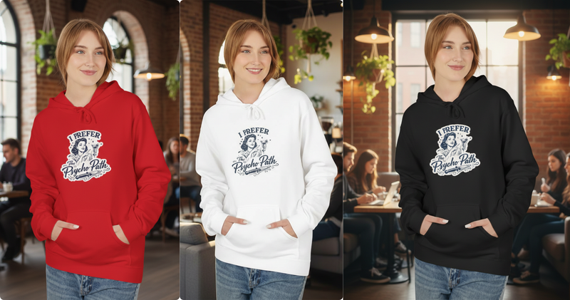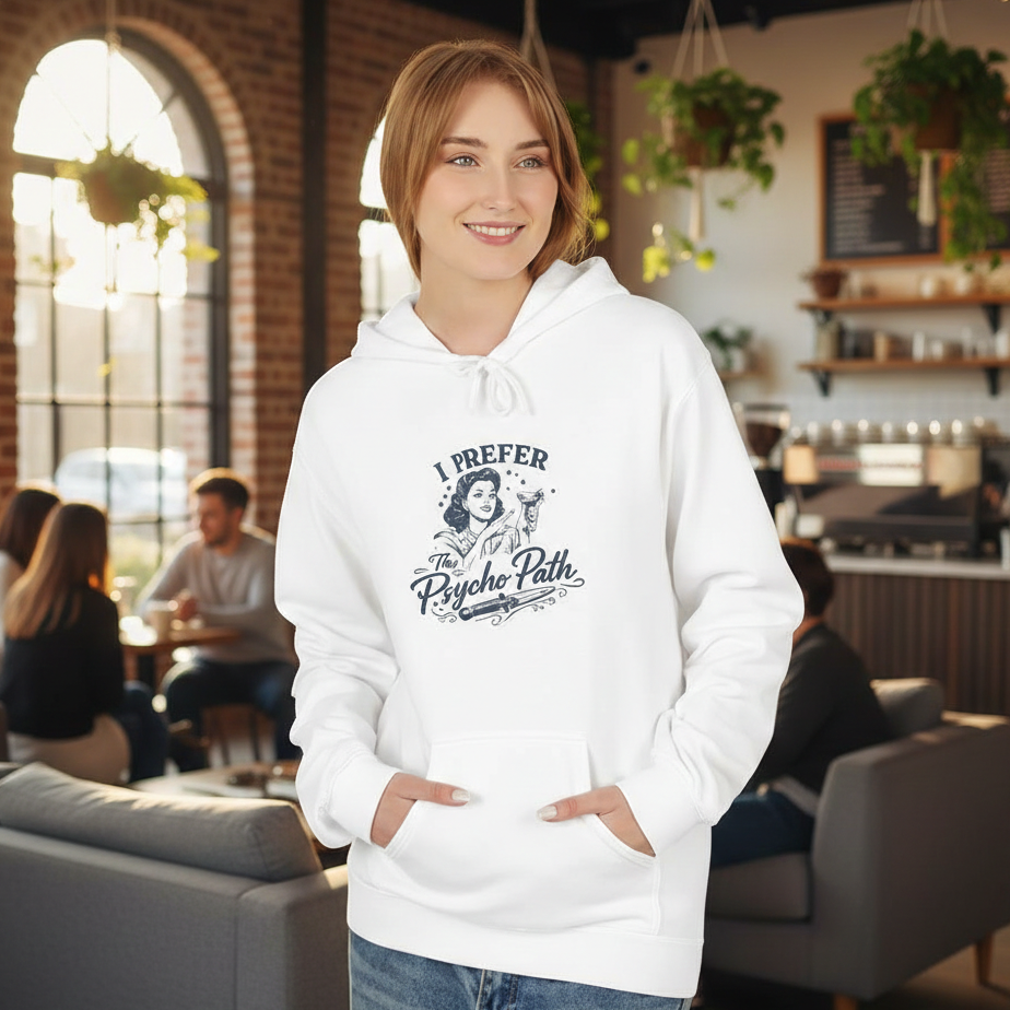Hoodie — "I Prefer the Psycho Path" Skeleton Graphic Hoodie — Dark Humor Casual Pullover
